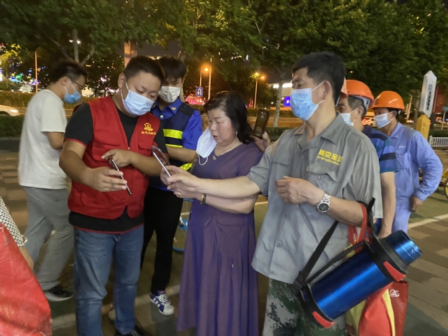 會(huì)后,集團(tuán)迅速組織黨員干部組成志愿者隊(duì)伍,聯(lián)系建鄴區(qū)認(rèn)領(lǐng)疫情防控志愿工作,趕赴多個(gè)社區(qū)協(xié)助防疫一線的核酸檢測(cè)工作。集團(tuán)志愿者隊(duì)伍每組都由集團(tuán)部室、公司負(fù)責(zé)人帶隊(duì),進(jìn)入工作現(xiàn)場(chǎng)后,他們迅速熟悉掌握工作要求,立即上崗?fù)度胫驹阜?wù)。引導(dǎo)前來(lái)進(jìn)行檢測(cè)的市民嚴(yán)守疫情防控要求有序排隊(duì)進(jìn)場(chǎng),安撫待檢人員相互配合支持,指導(dǎo)幫助登記掃碼加快工作速度,為老人和困難市民提供方便服務(wù)……在他們與其他志愿者的共同努力下,這幾個(gè)檢測(cè)點(diǎn)都秩序井然,有效推進(jìn)了檢測(cè)速度,減少了市民等待時(shí)間。志愿者們把保障核酸檢測(cè)有序高效推進(jìn)作為此時(shí)踐行初心使命的擔(dān)當(dāng),忘記了炎熱夏夜忙碌的一身汗水,忘記了蚊蟲(chóng)繞身不停的叮咬,為筑起群眾生命健康防線獻(xiàn)出了一份力量。