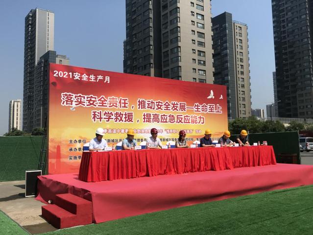 根據(jù)2021年“安全生產(chǎn)月”活動(dòng)計(jì)劃安排,6月22日上午,河西集團(tuán)和河西新城管委會(huì)在秦新路道路建設(shè)工程項(xiàng)目部聯(lián)合舉辦夏季高溫中暑應(yīng)急救援演練活動(dòng)。