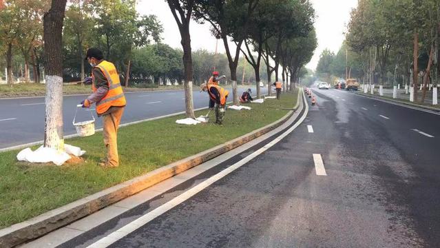 綠化工人嚴(yán)格按照公司刷白標(biāo)準(zhǔn)進(jìn)行規(guī)范操作,墊板——定高——刮皮——補(bǔ)樹洞——自上而下均勻涂刷,刷白過程一氣呵成,并達(dá)到了不流、干后不翹、不脫落的刷白效果。高質(zhì)量、高效率的刷白工作得到了上級部門,特別是公司在外地項(xiàng)目上級部門的一致好評,刷白后的樹木也成為城區(qū)冬季一道獨(dú)特靚麗的風(fēng)景線。