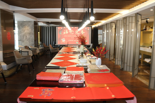 寫春聯(lián)、貼春聯(lián)是中國春節(jié)的傳統(tǒng)習(xí)俗,也是辭舊迎新過大年的一種象征。為弘揚中華書法藝術(shù)與傳統(tǒng)節(jié)日文化,給市民、住店客人送上新春祝福。近日,河西集團青奧城公司金帆萬源酒店開展“福虎迎春”2022新年納福公益筆會,來自南京的書畫名家應(yīng)邀出席。