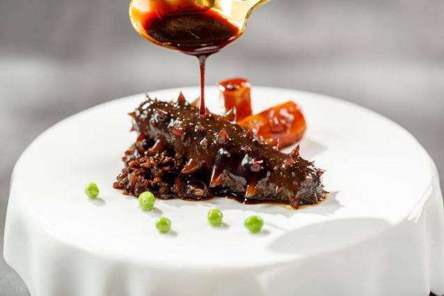 “蜜汁脆皮刺參”一改傳統(tǒng)燜煮做法,選用上乘刺身,通過新派創(chuàng)意手法炸制出的脆皮遇上總廚自創(chuàng)澆汁,爽口彈牙。