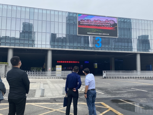 5月26日上午,市司法局黨組成員、副局長賀慶帶隊蒞臨集團就法治宣傳工作開展情況進行調(diào)研指導(dǎo)。在集團副總經(jīng)理、黨委委員曹志堅陪同下,調(diào)研組一行先后赴國際博覽中心、青年文化體育公園、魚嘴濕地公園白鷺廣場等地,對人群集中地段的戶外大型電子顯示屏進行實地考察,現(xiàn)場觀看了民法典公益廣告及宣傳標(biāo)語等播放情況。現(xiàn)場調(diào)研后,曹志堅對集團法治文化環(huán)境及建設(shè)情況進行了詳細匯報。
