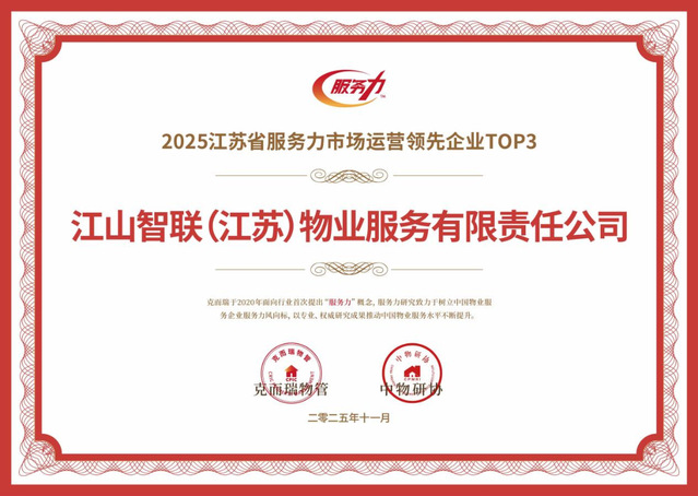 河西集團江山智聯(lián)物業(yè)憑借卓越的服務品質與前瞻的戰(zhàn)略布局,一舉斬獲2025南京國有物業(yè)服務力領先企業(yè)TOP1、2025江蘇省服務力市場運營領先企業(yè)TOP3、2025物業(yè)服務力南京十強、2025物業(yè)服務力江蘇省三十強、2025華東區(qū)域物業(yè)服務力百強企業(yè)、五項行業(yè)重磅榮譽。